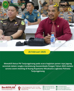 Bpk. Wedy Novizar, S.H. mewakili Ketua PN Tanjungpinang pada acara kegiatan panen raya Jagung serentak dalam rangka mendukung Swasembada Pangan Tahun 2025 melalui sarana zoom meeting di Ruang Rupatama Wicaksana Laghawa Polresta Tanjungpinang.