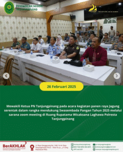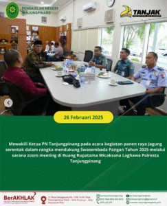 Bpk. Wedy Novizar, S.H. mewakili Ketua PN Tanjungpinang pada acara kegiatan panen raya Jagung serentak dalam rangka mendukung Swasembada Pangan Tahun 2025 melalui sarana zoom meeting di Ruang Rupatama Wicaksana Laghawa Polresta Tanjungpinang.