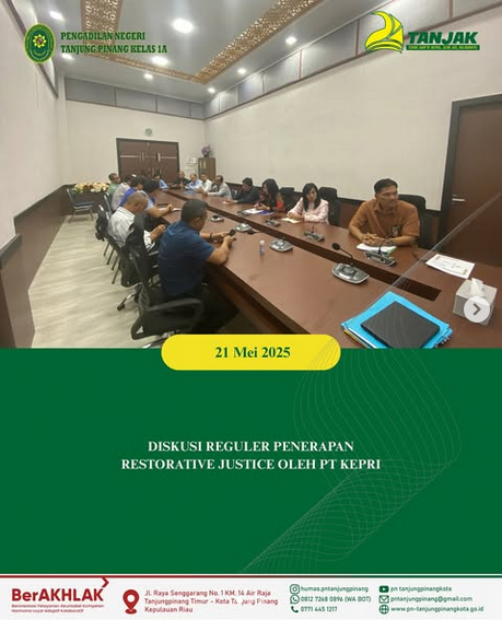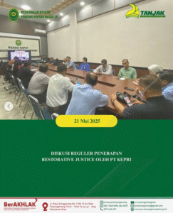 Berita Terkini Mei 21, 2025Juli 24, 2025Muhammad Fahrizzaman Diskusi Reguler Penerapan Restorative Justice Oleh PT Kepri, 21 Mei 2025