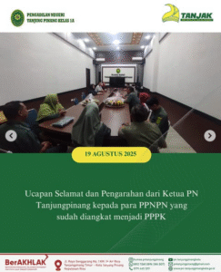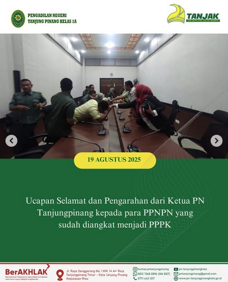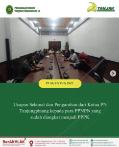Ucapan Selamat dan Pengarahan dari Ketua PN Tanjungpinang kepada para PPNPN yang sudah diangkat menjadi PPPK. Selasa, 19 Agustus 2025.