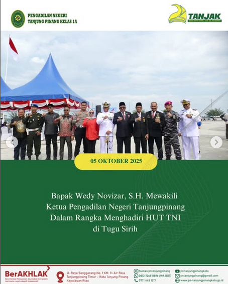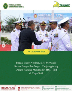 Bapak Wedy Novizar, S.H. Mewakili Ketua Pengadilan Negeri Tanjungpinang Dalam Rangka Menghadiri HUT TNI di Tugu Sirih. Minggu, 05 Oktober 2025.