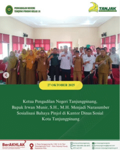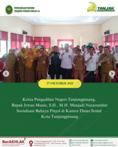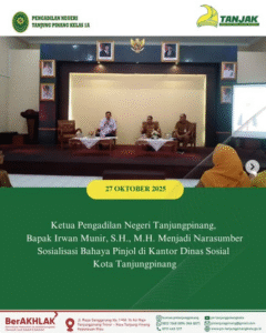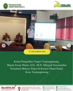Ketua Pengadilan Negeri Tanjungpinang, Bapak Irwan Munir, S.H., M.H. Menjadi Narasumber Sosialisasi Bahaya Pinjol di Kantor Dinas Sosial Kota Tanjungpinang. Senin, 27 Oktober 2025.