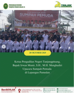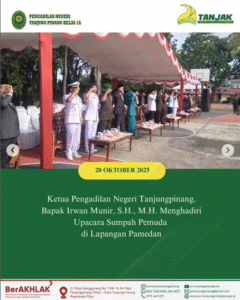 Ketua Pengadilan Negeri Tanjungpinang, Bapak Irwan Munir, S.H., M.H. Menghadiri Upacara Sumpah Pemuda Ke-97 di Lapangan Pamedan. Selasa, 28 Oktober 2025.