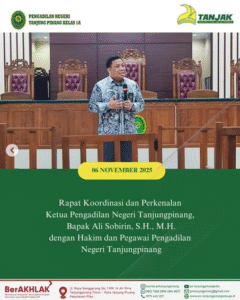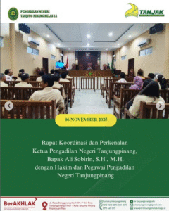 Rapat Koordinasi dan Perkenalan Ketua Pengadilan Negeri Tanjungpinang, Bapak Ali Sobirin, S.H., M.H. dengan Hakim dan Pegawai Pengadilan Negeri Tanjungpinang. 6 November 2025.