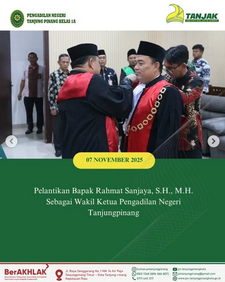 Pelantikan Bapak Rahmat Sanjaya, S.H., M.H. Sebagai Wakil Ketua Pengadilan Negeri Tanjungpinang. 7 November 2025.
