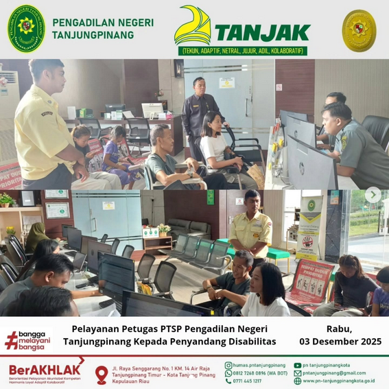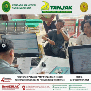 Pelayanan Petugas PTSP Pengadilan Negeri Tanjungpinang Kepada Penyandang Disabilitas. Rabu, 03 Desember 2025.