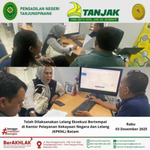 Telah dilaksanakan Lelang Eksekusi Pengadilan Negeri Tanjungpinang yang Bertempat di Kantor Pelayanan Kekayaan Negara dan Lelang (KPKNL) Batam, dalam Perkara Eksekusi Hak Tanggungan Nomor 3/Pdt.Eks.AHT/2024/PN Tpg dan Nomor 5/Pdt.Eks.AHT/2024/PN Tpg. Rabu, 03 Desember 2025.