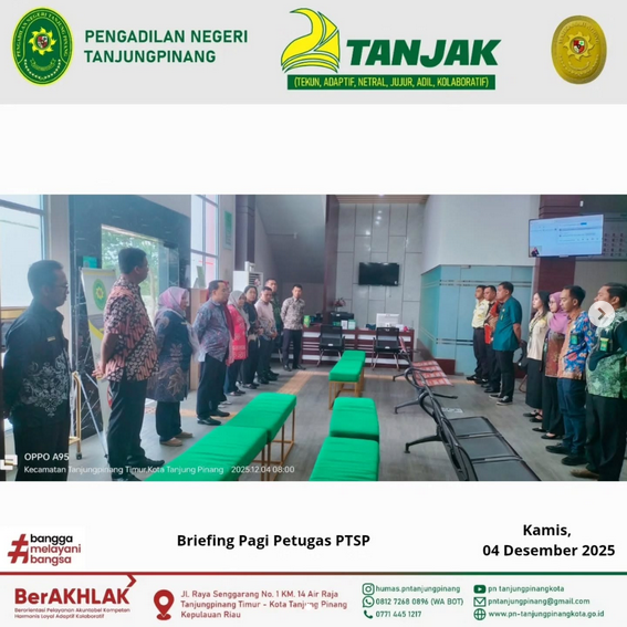 2. Tetap semangat menjaga kebersihan dan kerapian kantor Pengadilan Negeri Tanjungpinang.