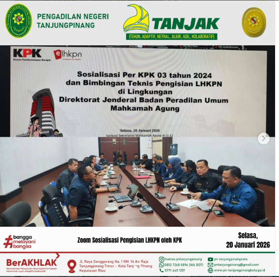 Zoom Sosialisasi dan Bimbingan Teknis Pengisian LHKPN di Lingkungan Direktorat Jendral Badan Peradilan Umum Mahkamah Agung. Selasa, 20 Januari 2026.