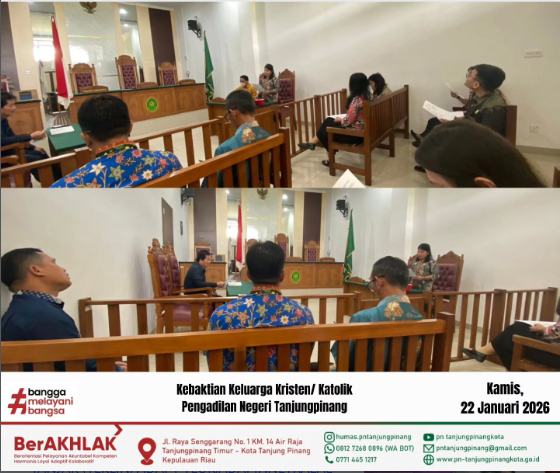 Kebaktian Rohani Keluarga Kristen/ Katolik Berita Terkini Januari 22, 2026Maret 2, 2026Andri Rahmadiyan Kebaktian Rohani Keluarga Kristen/ Katolik Pengadilan Negeri Tanjungpinang. Kamis, 22 Januari 2026.