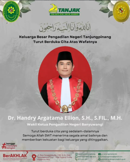 Pengadilan Negeri Tanjungpinang Turut Berduka Cita Atas Wafatnya “Dr. Handry Argatama Ellion, S.H., S.FIL., M.H., Wakil Ketua Pengadilan Negeri Banyuwangi”.