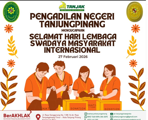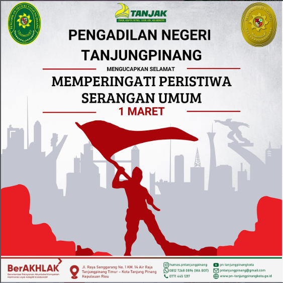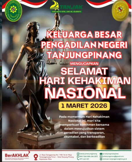 Pengadilan Negeri Tanjungpinang Mengucapkan Selamat Memperingati Hari Surat Perintah Sebelas Maret (Supersemar) 🇮🇩 Momentum bersejarah yang menjadi bagian penting dalam perjalanan bangsa Indonesia. Semoga semangat pengabdian, persatuan, dan tanggung jawab dalam menjaga stabilitas serta keutuhan negara senantiasa menjadi inspirasi bagi kita semua dalam mengabdi kepada bangsa dan negara. — Bantu kami memperbaiki kualitas pelayanan dengan […]