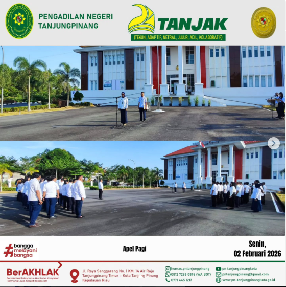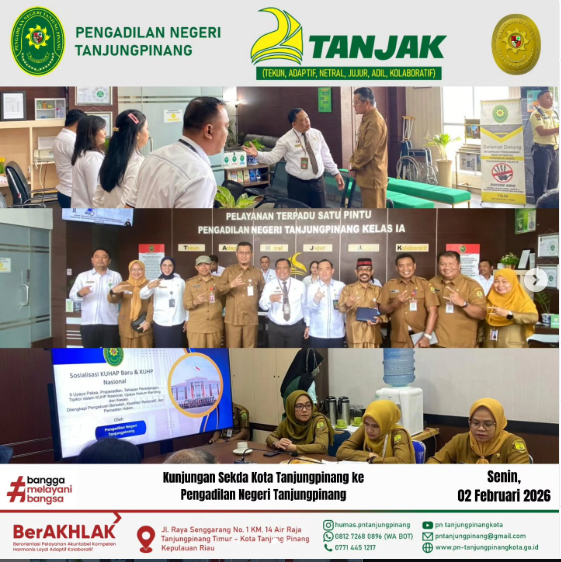 ❗️PENGUMUMAN JAM KERJA BULAN RAMADHAN 1447 H❗️ Berdasarkan Surat Edaran Sekretaris Mahkamah Agung Nomor 2 Tahun 2026 tentang Penetapan Jam Kerja pada Bulan Ramadhan di Lingkungan Mahkamah Agung dan Peradilan di Bawahnya, Pengadilan Negeri Tanjungpinang menyampaikan jam kerja selama Bulan Ramadhan sebagai berikut: 📌 SENIN – KAMIS, Jam Kerja: 08.00 – 15.00 WIB | Istirahat: […]