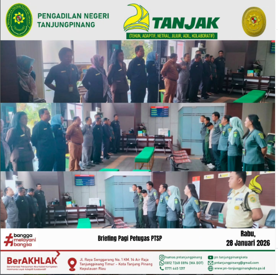Dalam Rangka Menyambut Hari Raya Idul Fitri, Pengadilan Negeri Tanjungpinang tidak menerima dan menolak seluruh pemberian atau bingkisan berupa: Parcel Karangan Bunga, Parcel Makanan / Minuman, Uang atau Barang Berharga Lainnya.